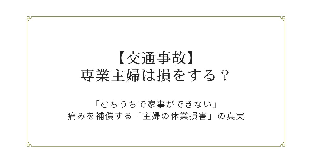 今回は、知らずに損をしている方が非常に多い、専業主婦(主夫)の交通事故における「休業損害」という正当な権利について解説します。