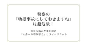 「車同士の事故じゃないから、接骨院に行くほど大げさな怪我じゃない」 その自己判断が、未来のあなたを苦しめることになります。