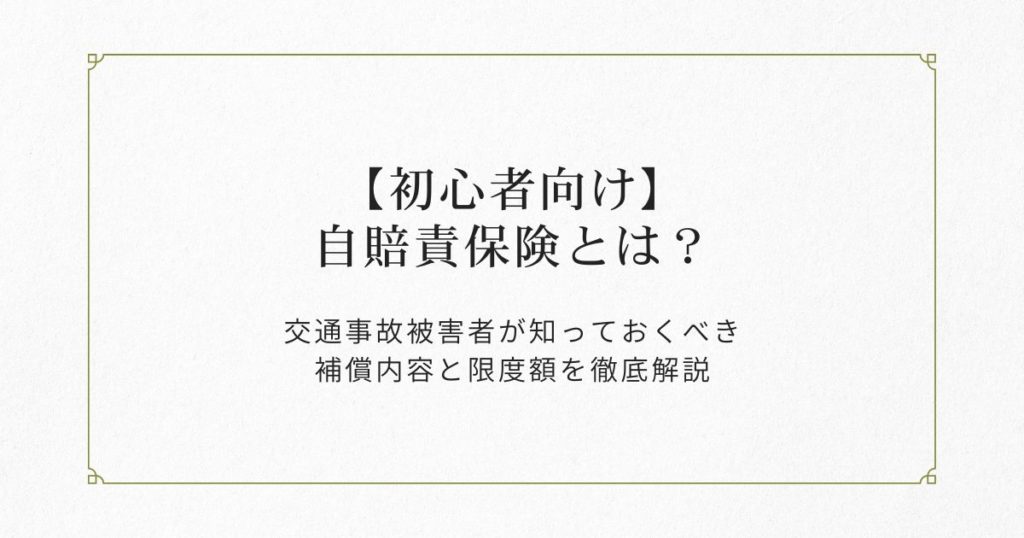 交通事故の「お守り」、自賠責保険を知っていますか? 交通事故に遭ってしまった時、身体の痛みと同じくらい不安になるのが「お金」のことです。 「治療費は誰が払うの?」「仕事を休んだ分の給料はどうなるの?」 「相手が無保険だったらどうしよう…」 そ... -