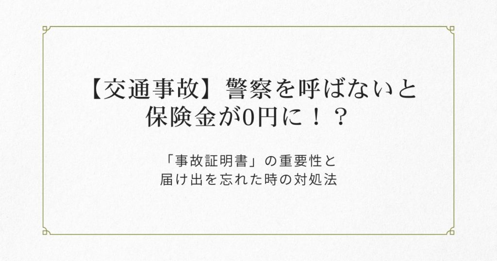 【交通事故】警察を呼ばないと保険金が0円に!?