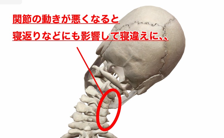 可動性が低下している状態で無理やり関節を動かすと、過度の摩擦が起き首の痛みへとつながります。