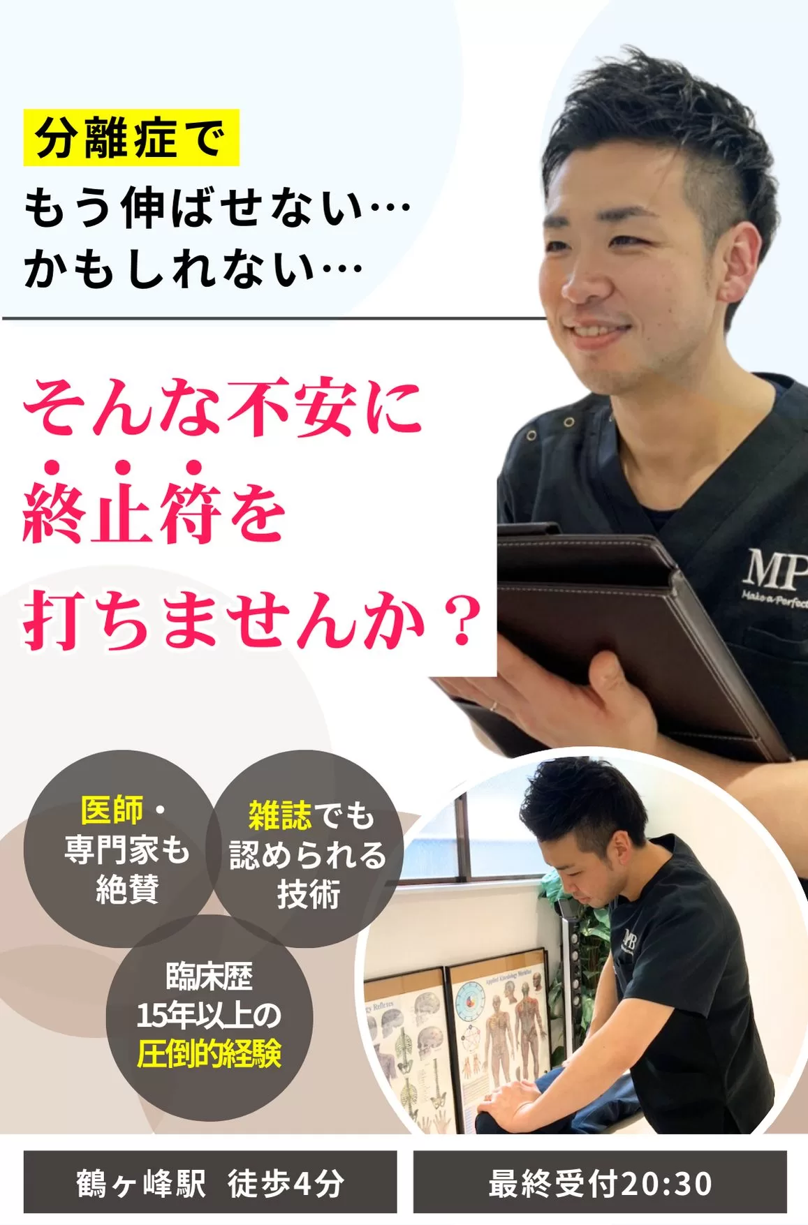 これまでの治療は電気や薬、注射だけ。しかし、こちらでは「なぜ痛みが出ているのか?」を詳しく説明してくれ、 根本改善を目指してくれたのが大きな違いでした。
