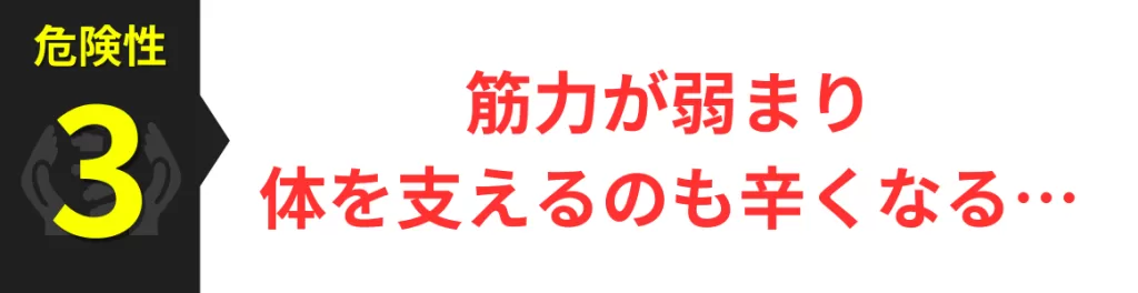 これにより、握力の低下や足がもつれるようになるなど、日常動作に支障が出ることがあります。