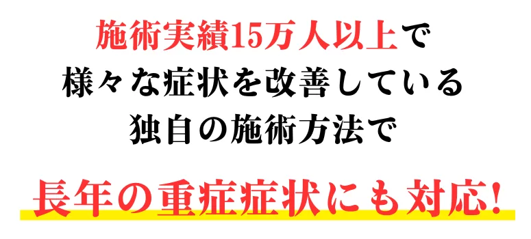| アプローチ | ・牽引・電気・マッサージ ・薬・注射 | 体を正常に戻す 独自のオンリーワン施術 |