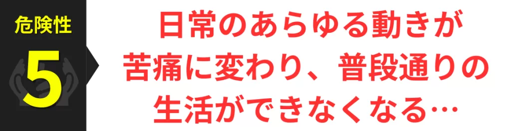 悪化が進むと、痛みや運動障害によって仕事や家事、趣味といった日常生活が難しくなる場合があります。