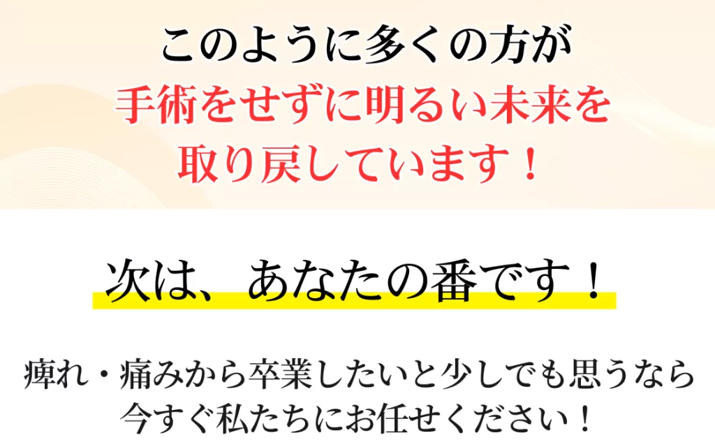 そのあなたの最高の未来を、痛みや痺れが治らなかったせいで送れなくなってほしくないんです。