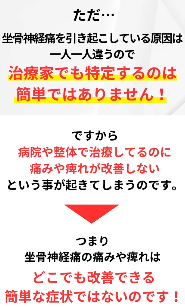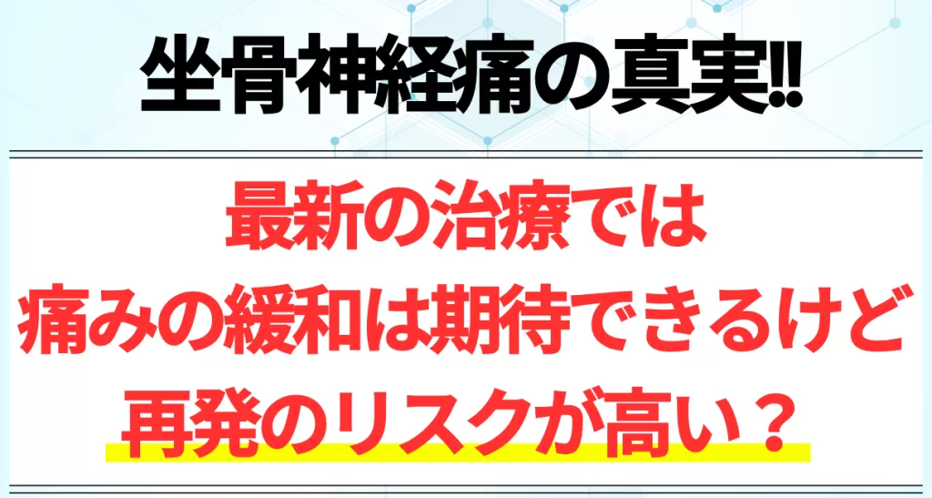 もちろん、本当に数回行くだけであなたの辛い坐骨神経痛の痛みや痺れが改善され、再発しないのであればそれに越したことはありません。
